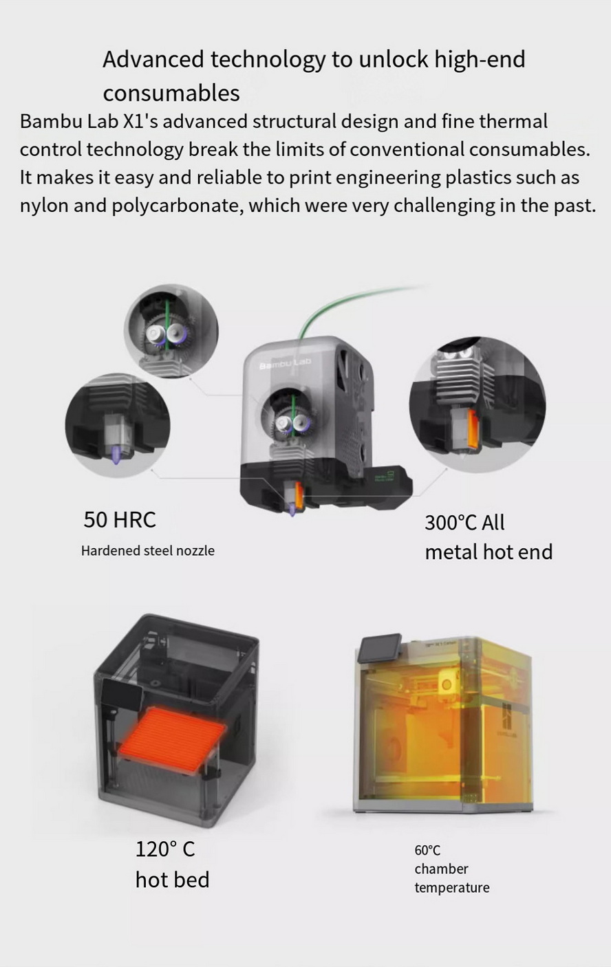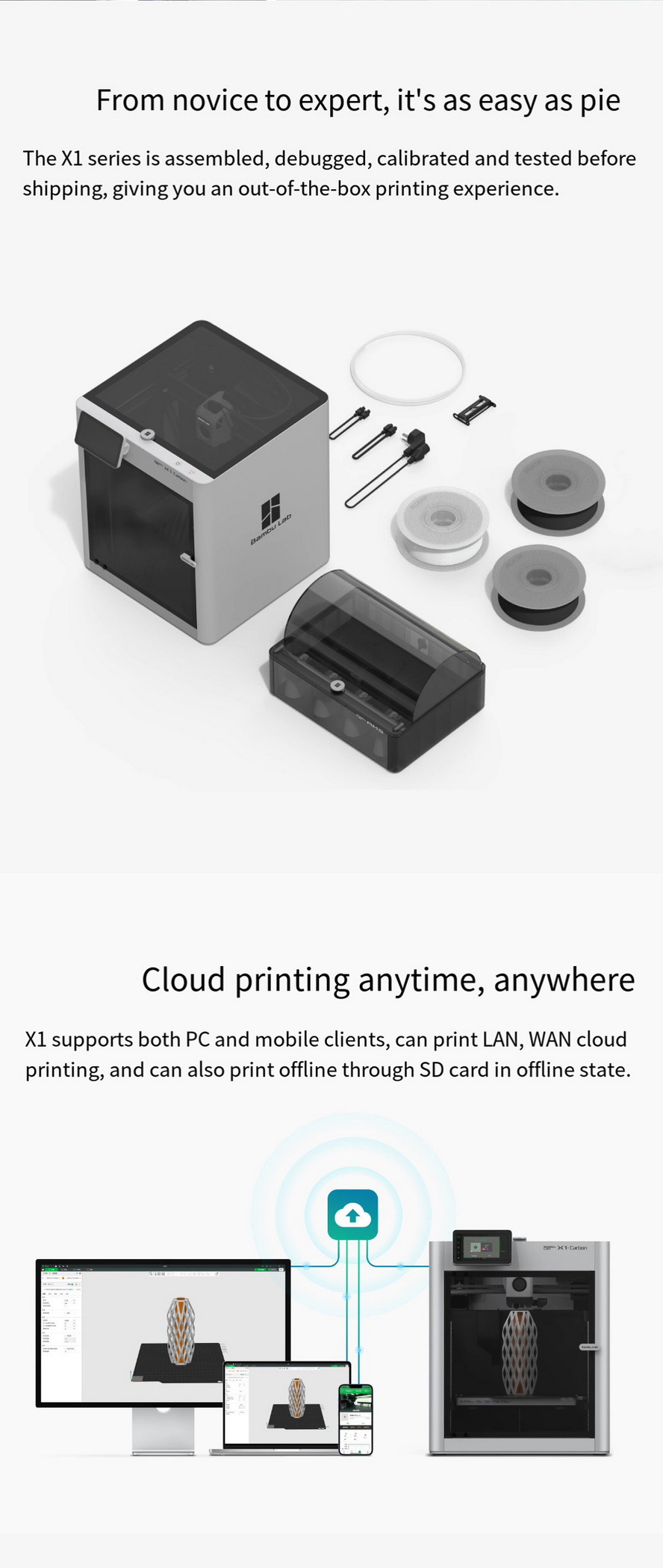 3D Printer X1 Series Fully Automatic Leveling Large Size High End Support 16 Color FDM Home Desktop Multi Color High Speed Smart Printer Bambu Lab
